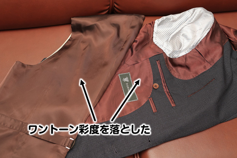 ただし、スリーピースにするときは、派手な裏地に注意して下さい。