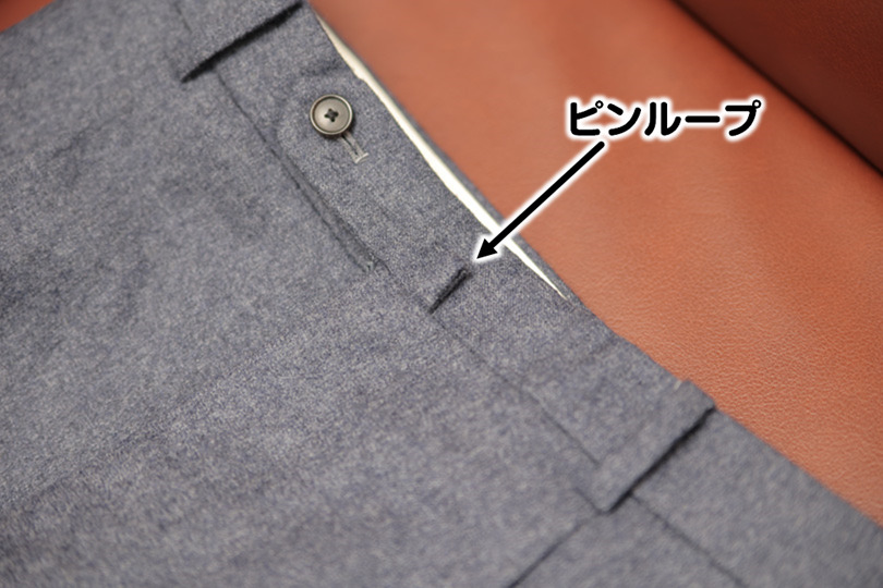ピンループとは、ベルトのバックルをズボンに固定するためのループです。
