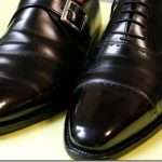私も普段ビジネスに使っているストレーチチップやプレーントゥに、少し強めに鏡面磨きを掛けたものを履いていくことが多いです。