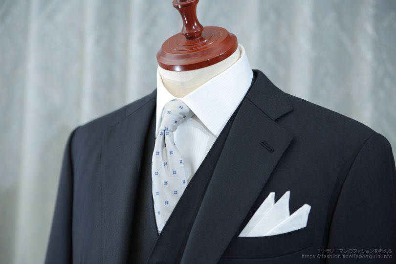 シングルの場合はウェストコート(ベスト)付きの三つ揃い(スリーピーススーツ)にすると、華やかさが増します