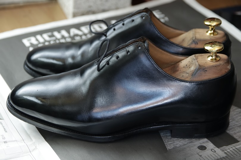 革靴は磨くとよく光ります。