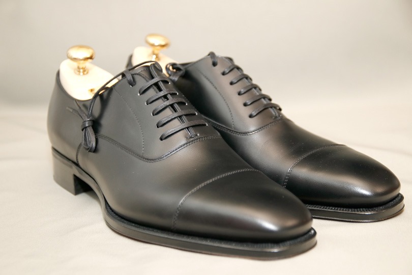 また、スエードやグレインレザーなどテクスチャがあるものでは無く、つるっとしたカーフレザーが良いでしょう(光沢のあるパテントレザーでも良いと思います。)。