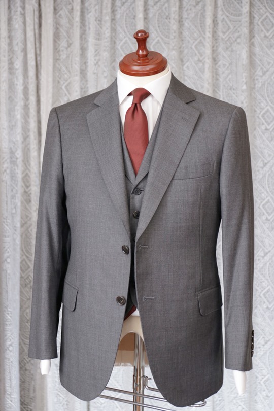 また、薄いグレイの替えベストがあれば、そちらを着ても綺麗だと思います(ただし、本則の三つ揃いからは外れます。)。
