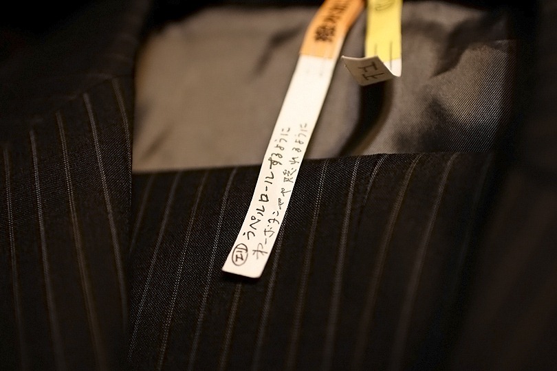 三つボタン段返りで作ったスーツだったので、クリーニング出荷時にアイロン位置を注意するようメモを入れたのですが、その旨がちゃんと記載されていました。こういう所も嬉しい配慮です。