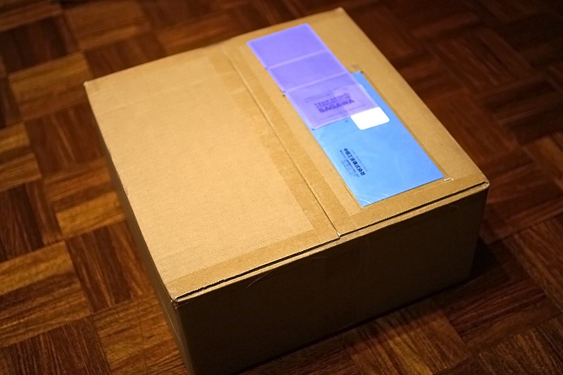 今回注文したのは「木製メンズスーツハンガー5本組」で、送料込\9,450でした。1本当たり\1,890。沢山使うことが分かっている場合は、こちらの方がお得です。結構大きめの段ボールで、注文の2日後には届きました。
