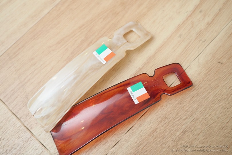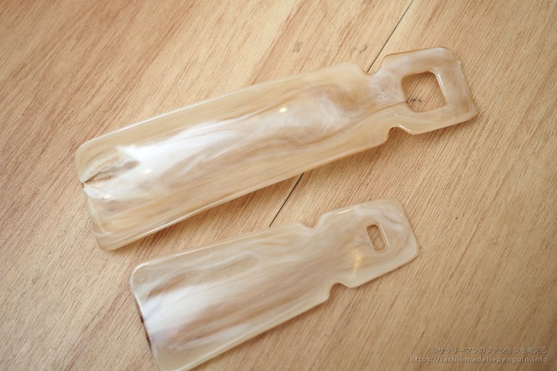 イタリアンシューホーン(14cm)は、屈みにくい服装時に活用予定ですが、その大きさゆえプラスチッキーさがより強調されてしまう点がNGです。