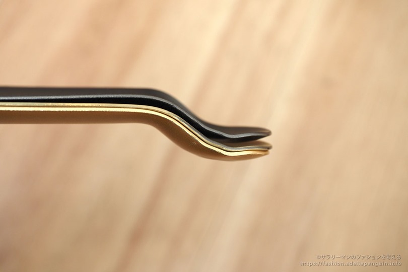 サフィールは取っ手をカールさせることで引き抜きやすくしていました。一方こちらは指にフィットする凹みで引き抜きやすさを実現しています。