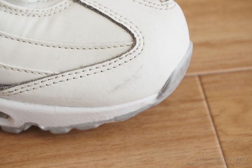 ただし、傷が付いた上で中に汚れが入り込んでいる場合は、落とす事は難しかったです。白色の靴クリームを塗り込むなどの処置が必要そうですね。