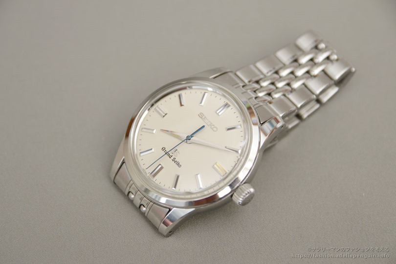 例えば、こういったシンプルな3針時計は、カジュアルな服装でも問題はありませんが、ビジネスウェアととても相性が良いです。