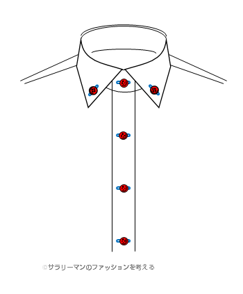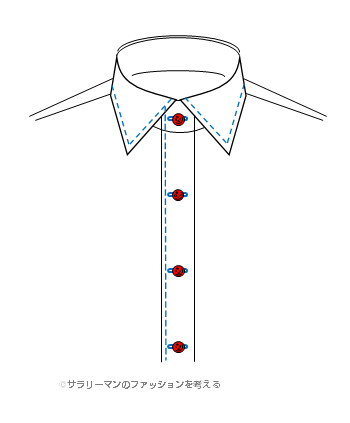 派手なステッチや原色のカラーボタンは、素材感をチープに見せ、シャツ全体、延いてはコーディネート全体を安っぽいイメージにしてしまうのです。(特に、原色カラーボタンは安く見えますよね……)