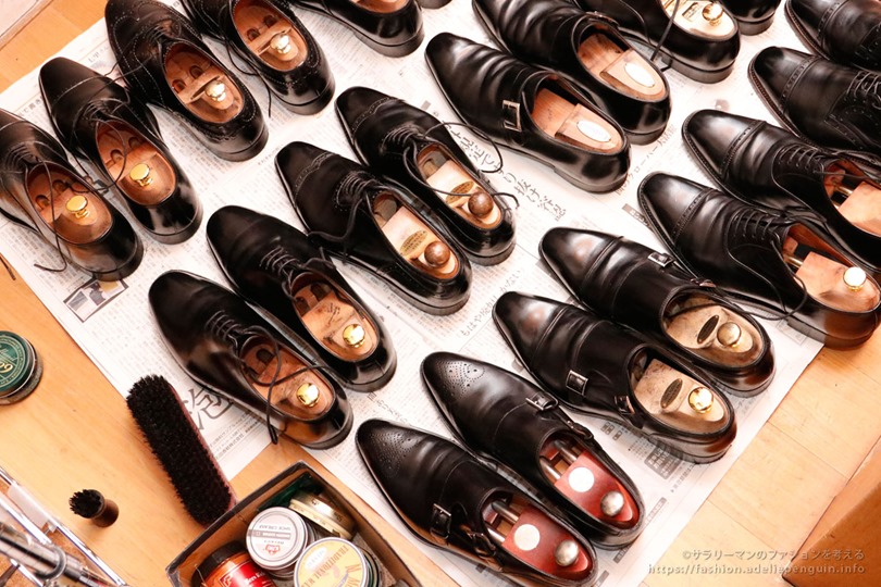 前週の休日に、まとめて靴磨きしてしまっても良いでしょう。(特に慶事や客先訪問用のドレス靴は磨いておきましょう。