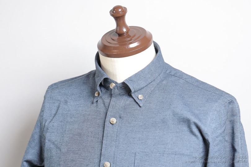 一方でボタンダウン衿は、左右ともしっかり屹立して、だらしなく見えず、清潔感を保つことができます。