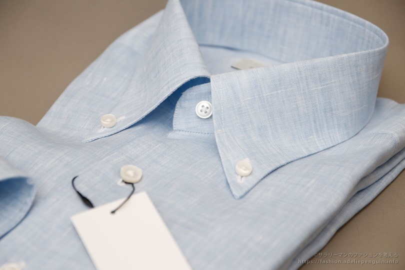 一方で、ボタンダウンシャツは衿をボタンで固定してしまうため、ある程度縫製が雑でも素人目には分からない、という点があります。