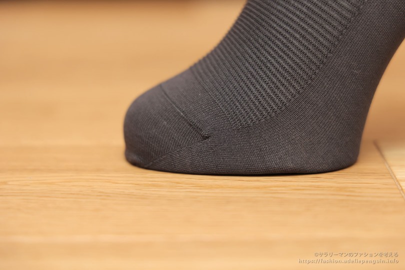 つま先とかかと部分のアップ。綺麗に接合されており、Japan Qualityを標榜する(正しくは認定される)だけのことはあります。