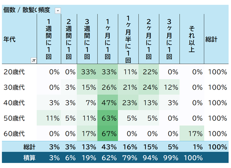 言い換えると、ファッションに少しでも興味があるサラリーマンは、やはり散髪の頻度も一般平均よりも高いようです。