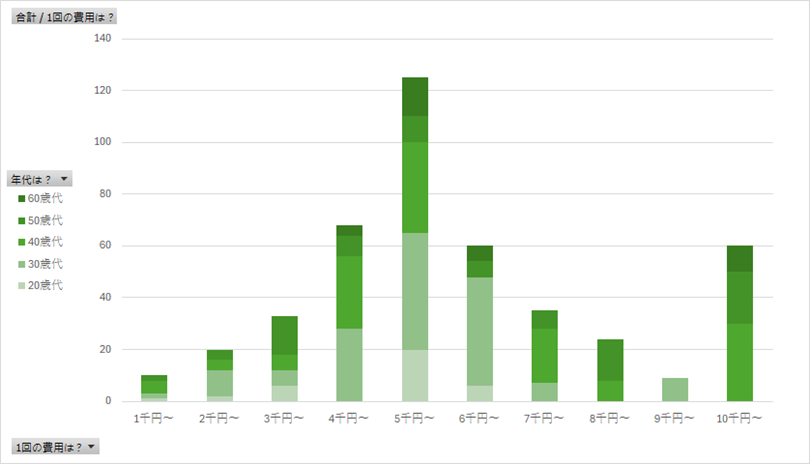 - 費用は5千円前後が多いが、1万円越えも1割以上いる(オプション代や高級店の利用)