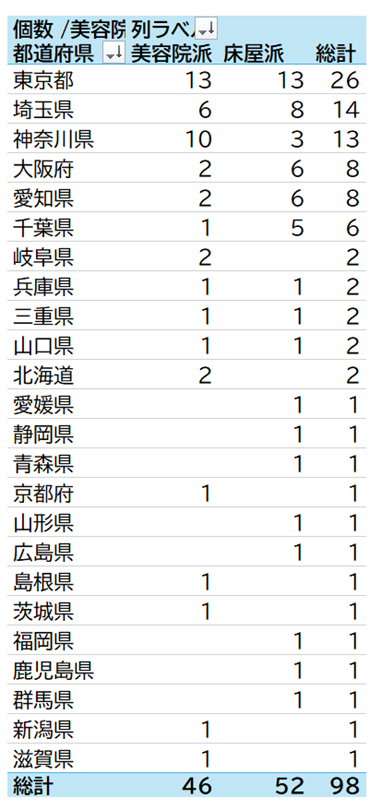 東京埼玉はほぼ半々、神奈川県は圧倒的に美容院派、大阪と愛知は床屋派の模様。