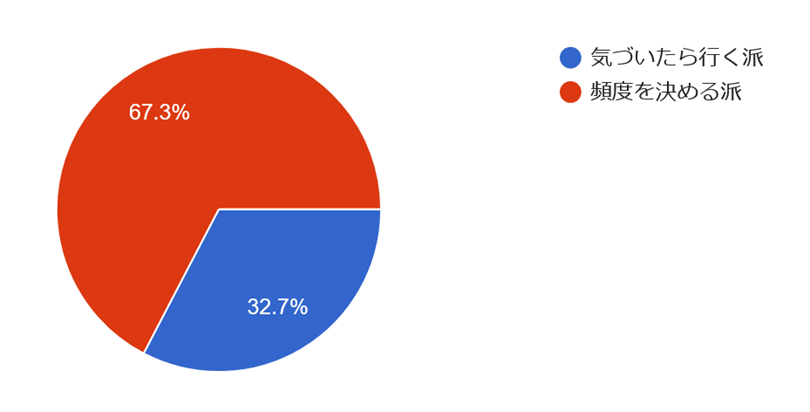なお、前回の記事でご紹介したリクルートのアンケート結果では、「1ヶ月に1回程度」「2ヶ月に1回程度」「3ヶ月に1回程度」がそれぞれ同率の3割前後でした。