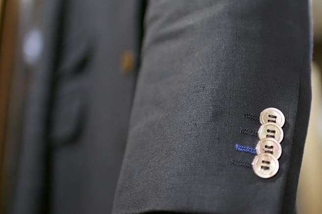 自分で付け替える場合、糸は専用のボタン付け糸(ポリエステル)を使うか、ロウ引きした麻の糸を使います。心配ならボタンとジャケットをテーラーや修理屋に持ち込めばOKです。