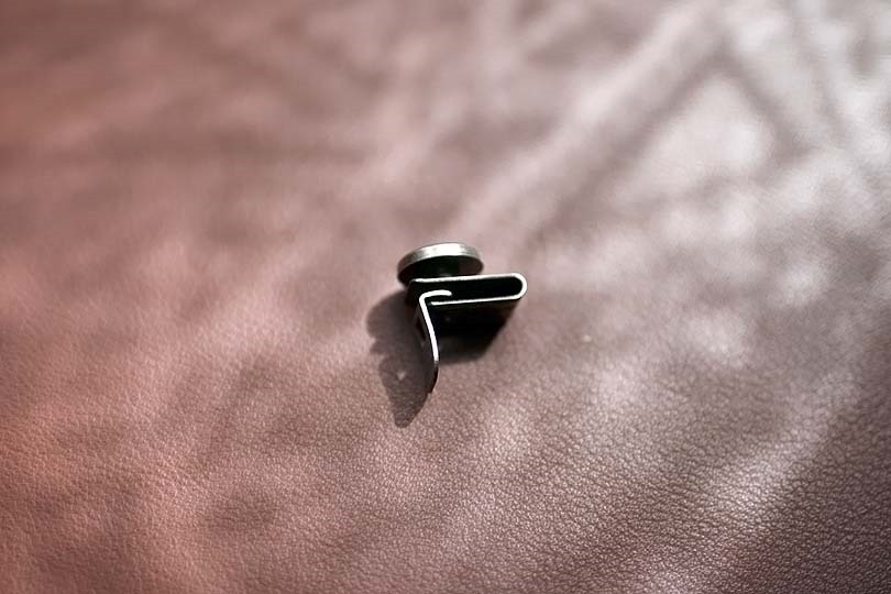 真鍮製のクリップに、おなじく真鍮製のボタンがついています。