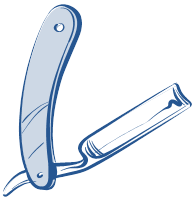 カミソリは、床屋で髭を剃って貰うときに使うアレです。