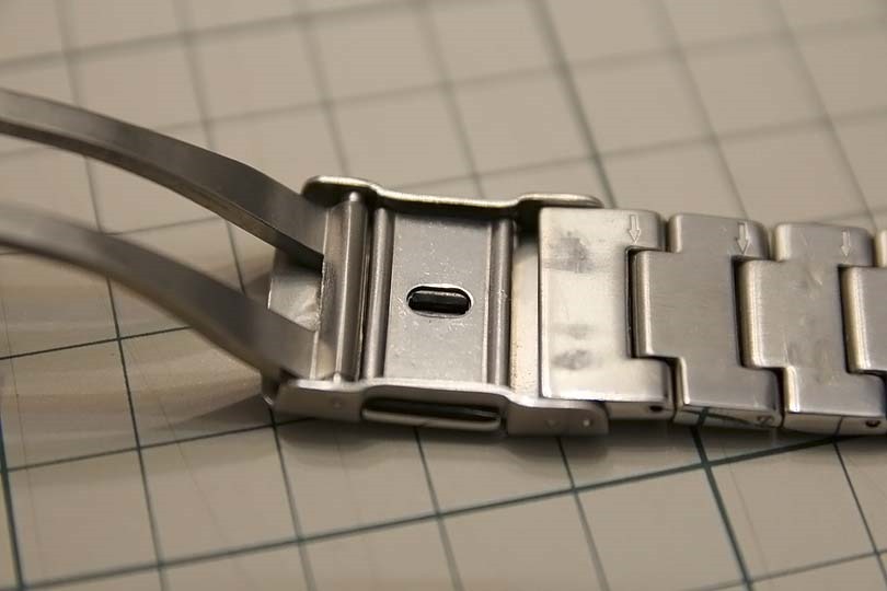 金属バンドの隙間に入り込んだ汚れを取ってみます。