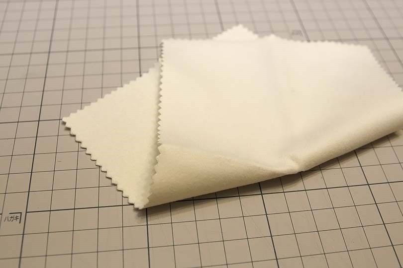 眼鏡ふきのように見えますが、表面は更にきめ細かく、擦ると指に吸い付くような感触があります。