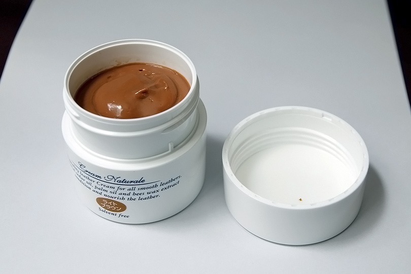 乳化性クリーム(主にビン入り)は水と油脂による保革が主眼で、若干のロウ分が含まれます。