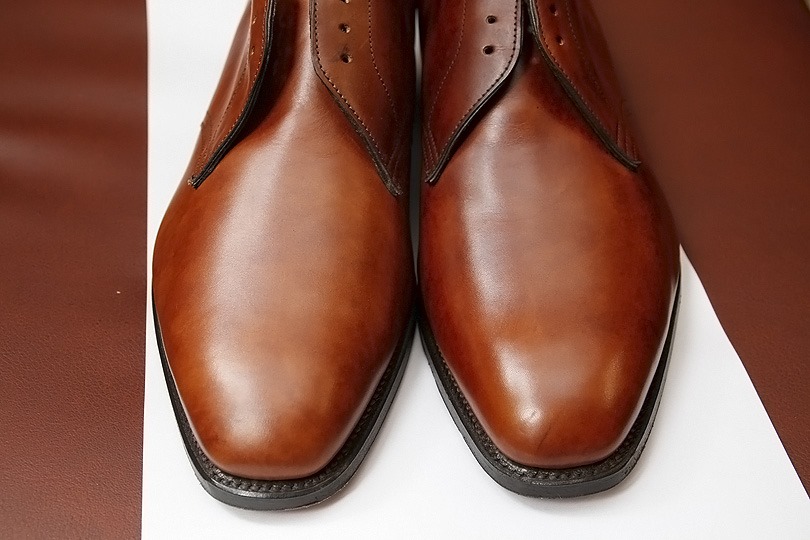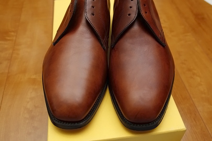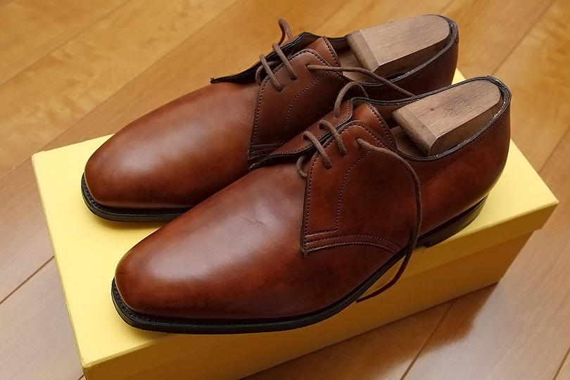 デッドストックで安く買えた、ライトブラウンの外羽根プレーントゥです。
