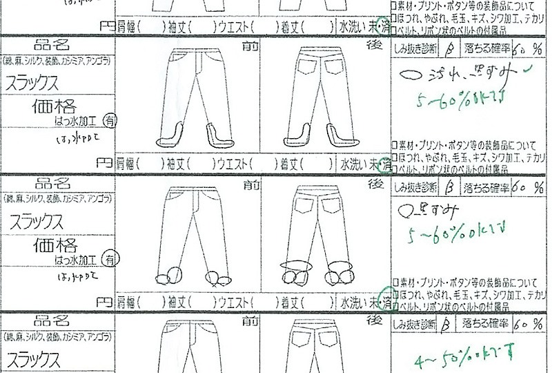 染み抜きが徹底して出来ない(手加減されてしまう)、