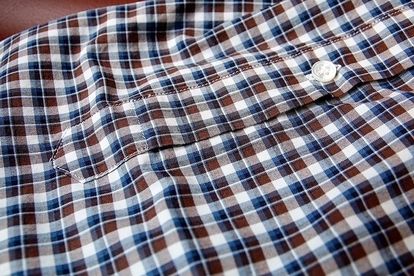 シャツのチェックが「茶」と「紺」なので、かなり汎用性が高いです。