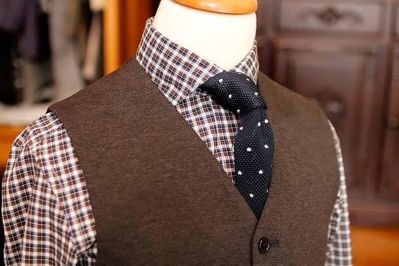 ジャケットをグレイのウェストコート(ベスト)に替えてみました。