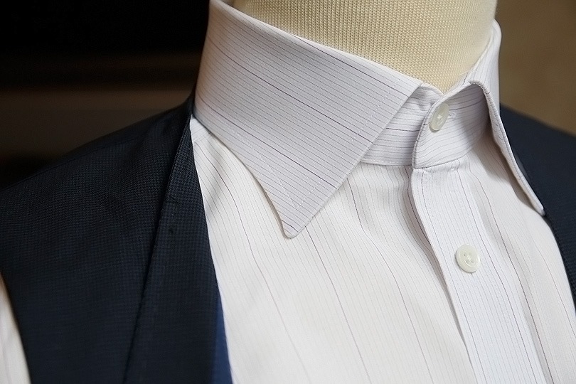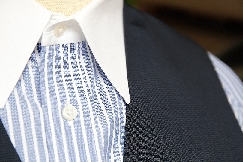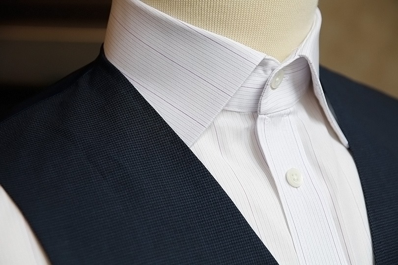 これは、シャツ・ウェストコート両方の衿が係わっています。この2つの組み合わせによっては、シャツの衿がウェストコートの衿の上に飛び出てしまうと言う、とても格好悪い状況になるからです。