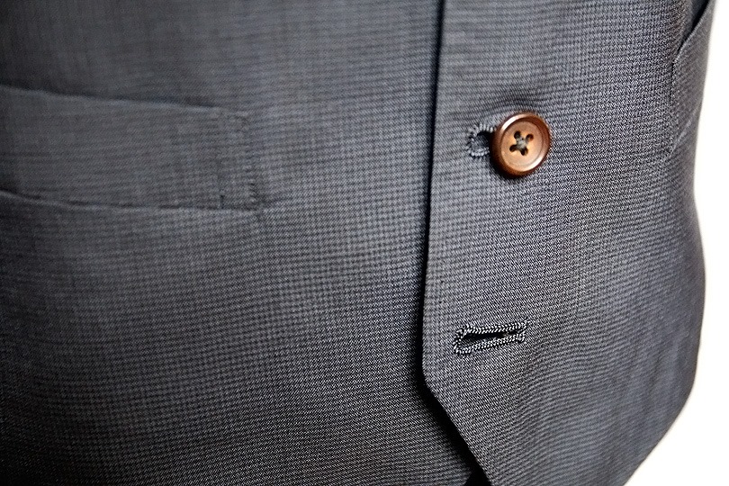 (下の写真の左が例。右はそもそもボタンを離してあるデザイン) - ジャケットと素材感を合わせる