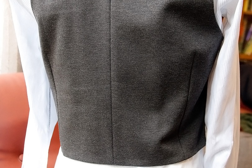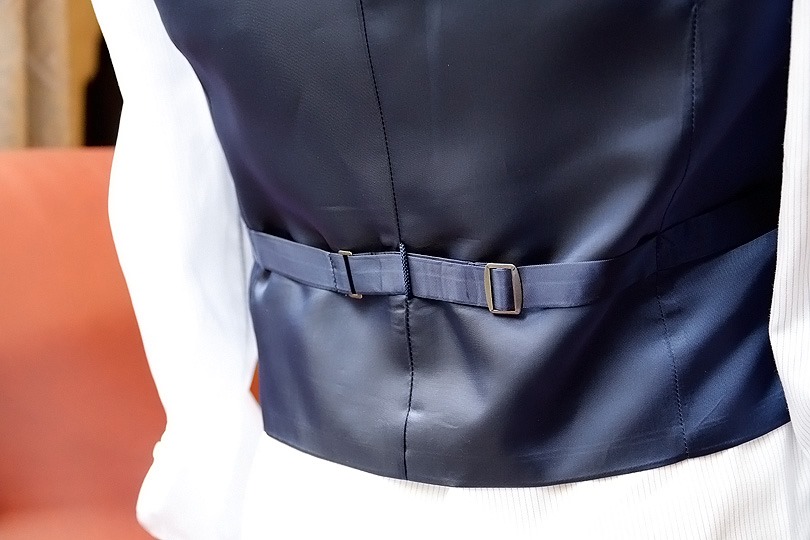 特にズボンと共地のウェストコートの場合、間を見せないことが重要です。