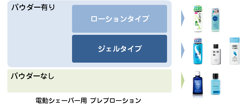 電気シェーバー用プレシェーブローションの種類を簡単にまとめると、