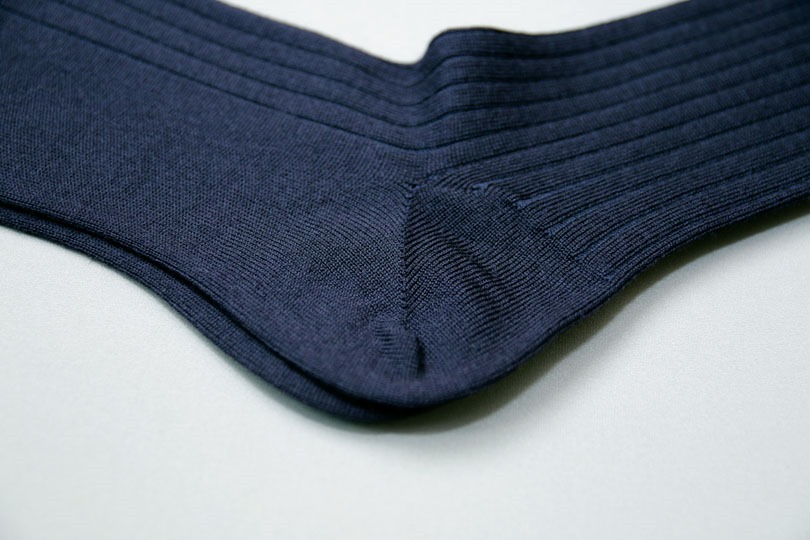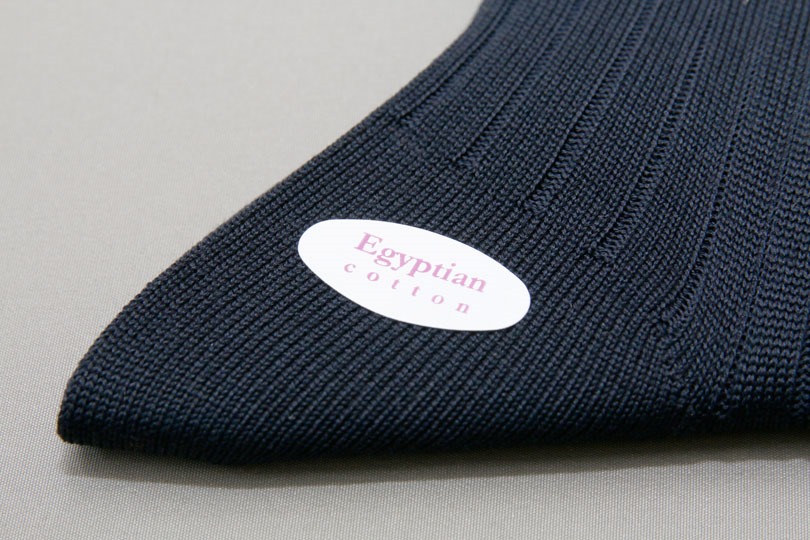 しなやかで光沢のある超長綿の代表格「エジプト綿」を使用。残念ながら綿100%ではなくナイロンが少し混紡されています。ただし、同じハリソンの綿100%を並行して履いてきましたが、履き心地は綿100%とほとんど変わりませんし、耐久性はこちらの方が間違いなく上でした。