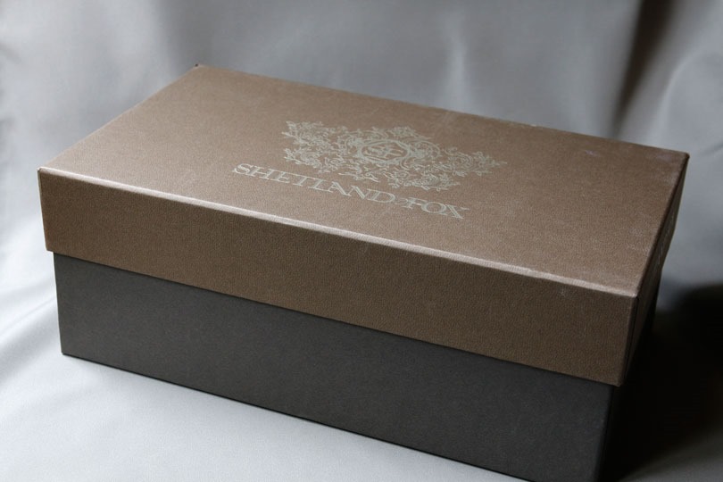 送られてきた段ボールはリーガルコーポレーションの名前が入っていましたが、靴の外箱はシェットランドフォックスの名前だけ。リーガル色を一切排除した造りになっています。