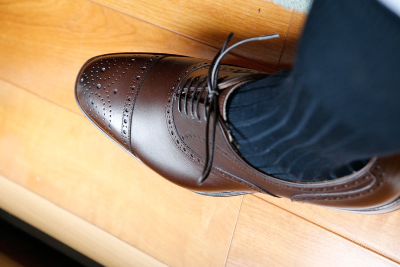 ダークブラウンのハーフブローグです。定価5万円と、日本製の革靴の中では高額な部類に入る一足ですが、ぱっと見で値段以上の質が感じられます。