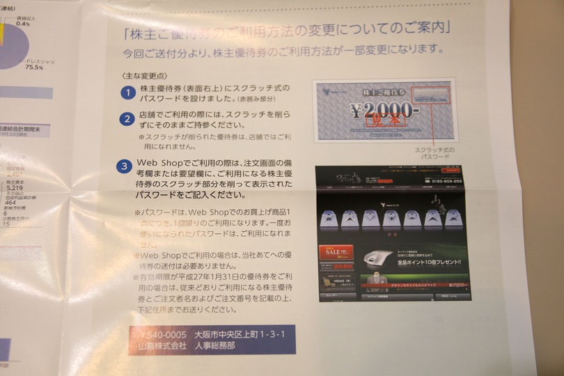 3.株主優待券の到着