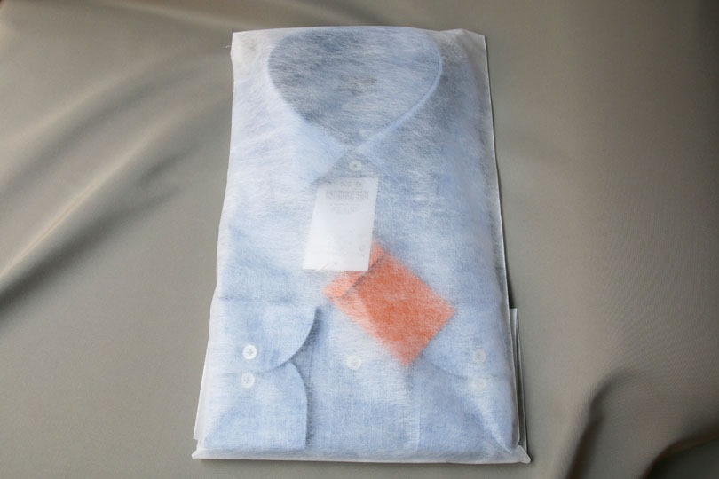 到着した段ボールを開けると、不織布に包まれたシャツが出てきました。