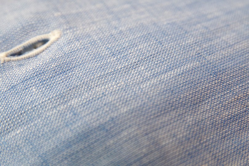 シャンブレーは、縦糸と横糸にそれぞれ違う色の糸を使って織った布のことで、麻素材に限る物ではありません。しかし、生地の質感が表情豊かになり、麻素材にとても相性の良く、特にジャケットを羽織らない単品使いとしてオススメの織りです。