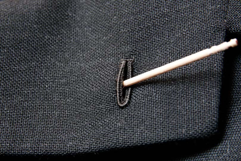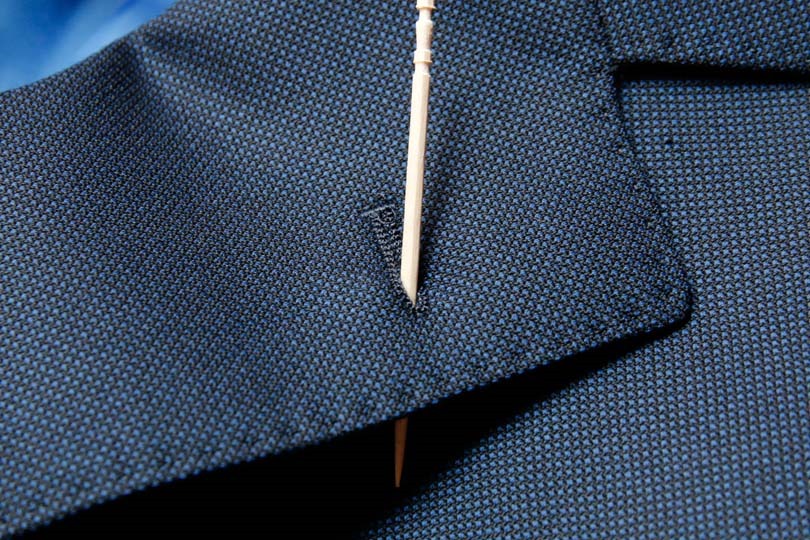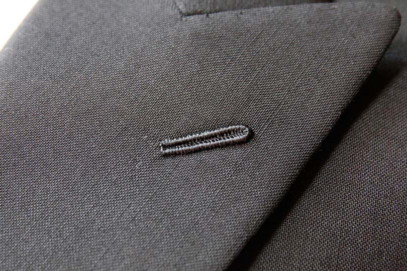 写真のように、今でもラペル(返し襟の下襟)の裏側に、花の茎を留めておくためのループ(フラワーループ)を付けているテーラーもあります。