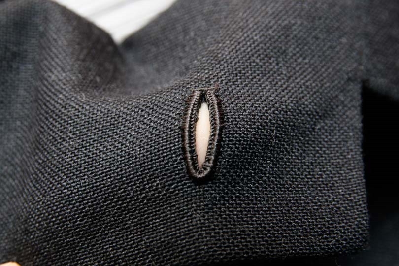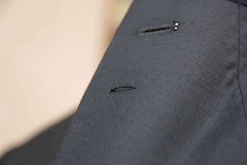 一部のブランドでは機械縫製のジャケットにボタンホールだけ手でかがることもあるくらいで、それほど印象が変わります。また、ジャケットの直しを請けている店では、手でかがり直してくれる所もありますので、手軽に楽しむことも出来ます。