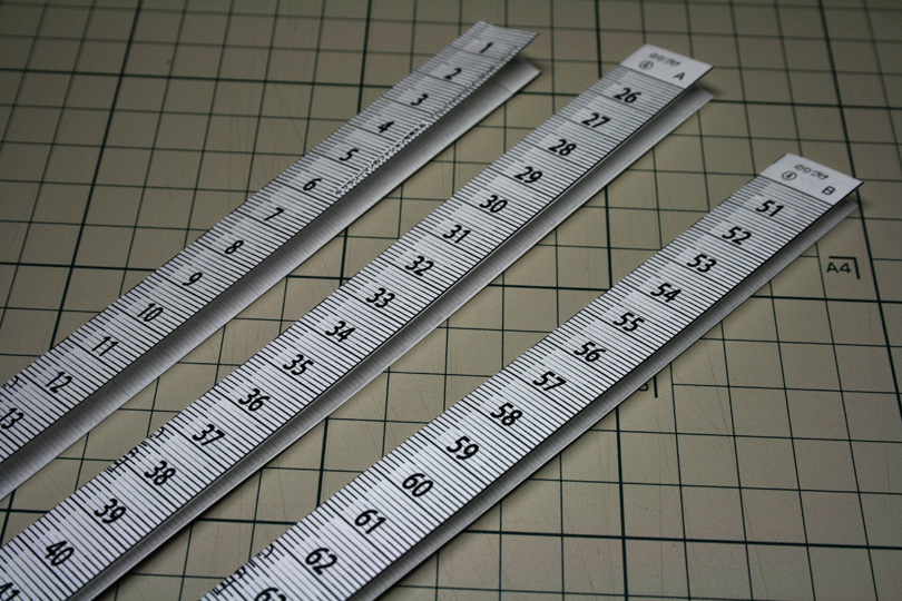 今回の作例は3つの短冊から75センチ分のメジャーを作ります。
