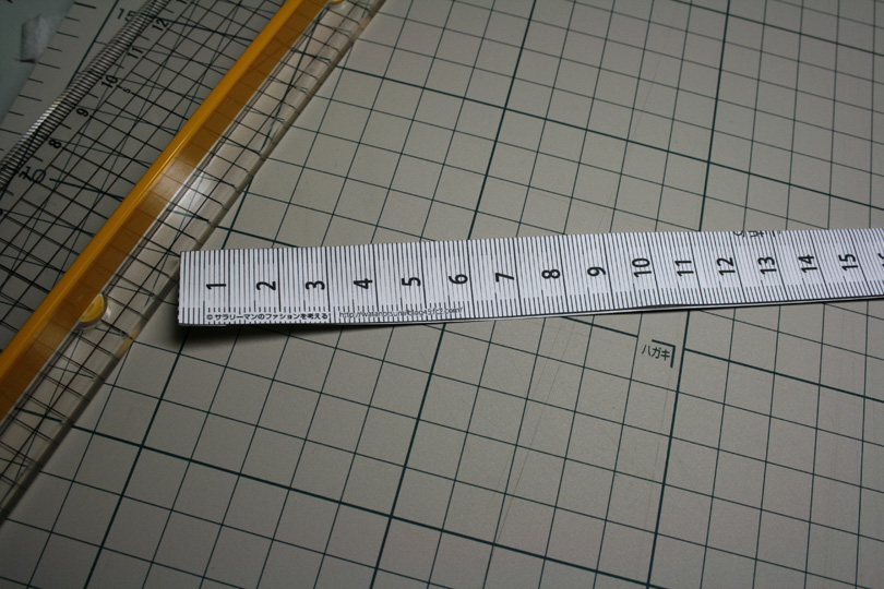 ⑤帯の内側にのりをつけ、一本のメジャーにします
