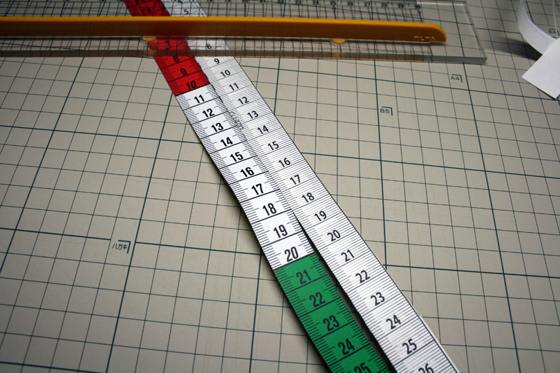 長さも測ってみましたが、全くずれがありません。(左側がテーラーで使うメジャーです)
