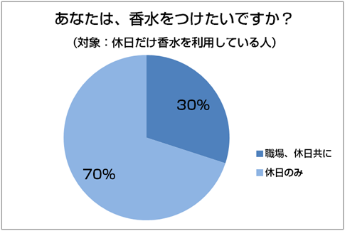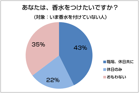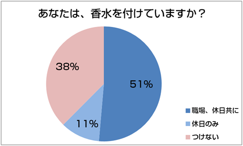 単純計算ですが、現行51%の人が職場で香水を付けているという結果でしたので、20%程度が「職場で付けたいが付けられていない」という事になります。