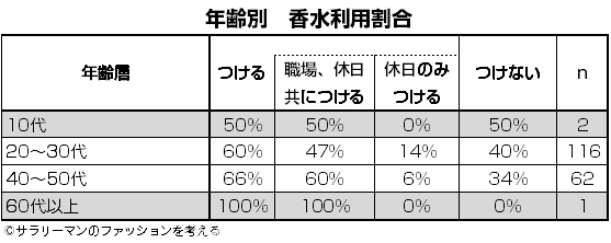 前項の女性読者からのコメントにもありましたが、香水の使いすぎや、付け方の間違い(重い香りを夏に使う、匂い消しとして使う、首回りなどダイレクトに他人に香る位置につける等)についても、コメントを戴きました。
