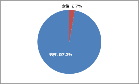 - 男女比:図1-1(ほぼ男性;男性97.3%、女性2.7%)